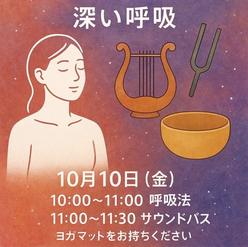午前:呼吸法 &とサウンドバス(呼吸法の後に温浴会を開催)